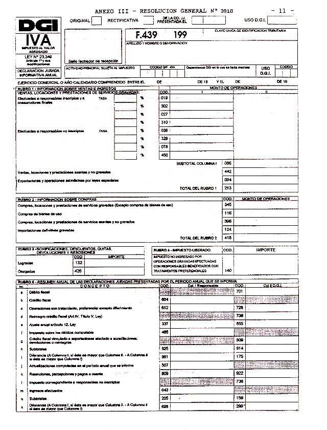 RUBRO 1: Se consignarán los importes totales correspondientes al período anual que se declara que surjan de sus facturas o documentos equivalentes, los cuales se les deducirán los descuentos y similares que se otorguen de acuerdo con las costumbres de plaza y el impuesto de esta Ley.