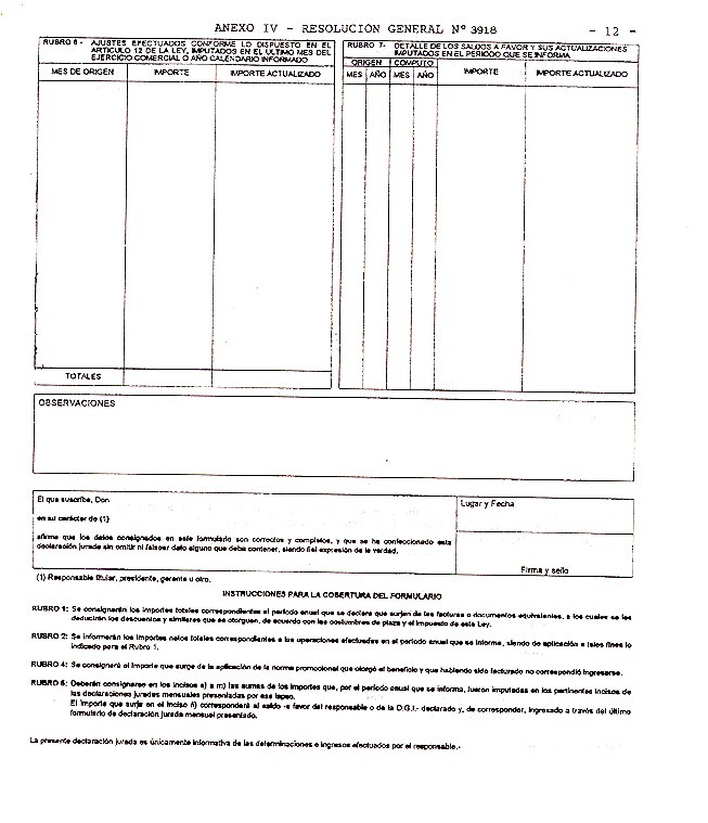 El importe que surja en el inciso ñ) corresponderá al saldo - a favor del responsable o de la D.G.I. - declarado y, de corresponder, ingresado a favor del último formulario de declaración jurada mensual presentado.