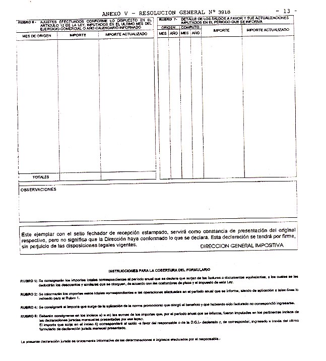 RUBRO 5: Deberán consignarse en los incisos a) a m) las sumas de los importes que por el periodo anual que se informa fueron imputadas en los pertinentes incisos de las Declaraciones Juradas mensuales presentadas por ese lapso.
